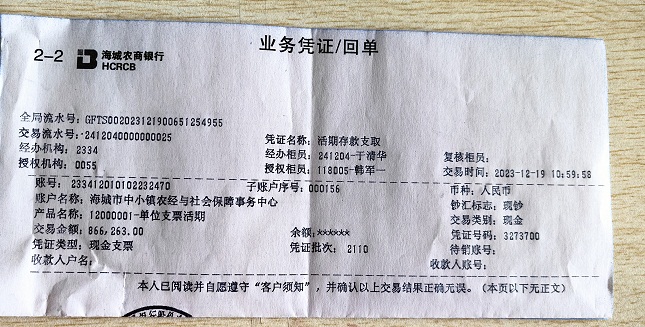 | 2023年12月19日 | 付马云雷2021年承包土地押金 | 5, 000.00 | -19, 173.53 | 点击查看 | |