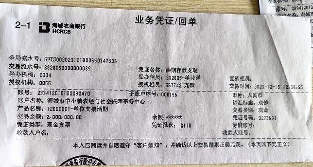 | 2023年12月27日 | 付2023年务工补助韩殿鹏 | 18, 000.00 | -194, 673.53 | 点击查看 | |