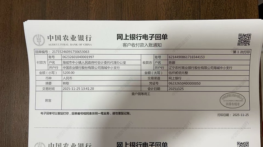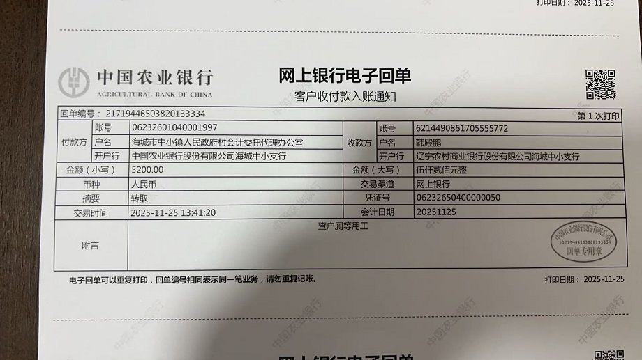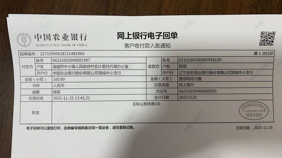| 2025年11月25日 | 转付韩殿鹏秸秆禁烧扥用工款 | 5, 200.00 | -56, 840.17 | 点击查看 | |