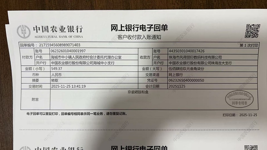 | 2025年11月25日 | 转付京瓷硒鼓粉盒款 | 549.37 | -90, 154.17 | 点击查看 | |
