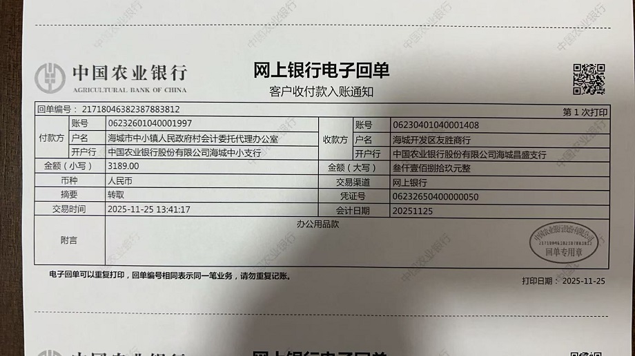 | 2025年12月12日 | 收马艳君土地承包费 | 255, 998.00 | 1, 318, 417.33 | 点击查看 | |