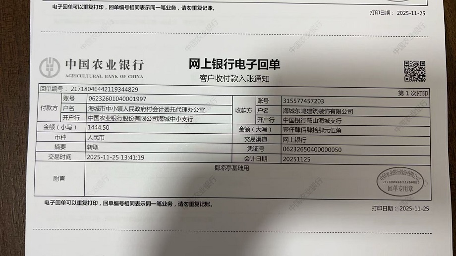 | 2025年11月25日 | 转付挪凉亭用水泥款 | 1, 444.50 | -48, 555.67 | 点击查看 | |
