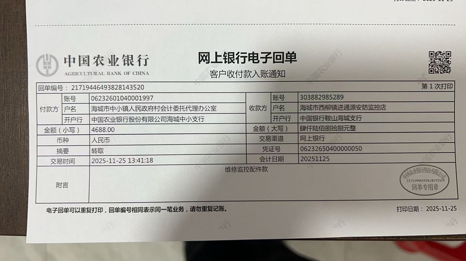 | 2025年11月25日 | 转付监控款 | 4, 688.00 | -93, 163.54 | 点击查看 | |