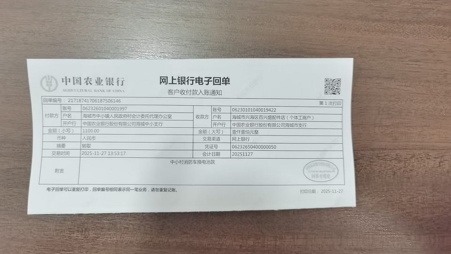 | 2025年11月10日 | 付消防车换电池款 | 1, 100.00 | -60, 964.54 | 点击查看 | |