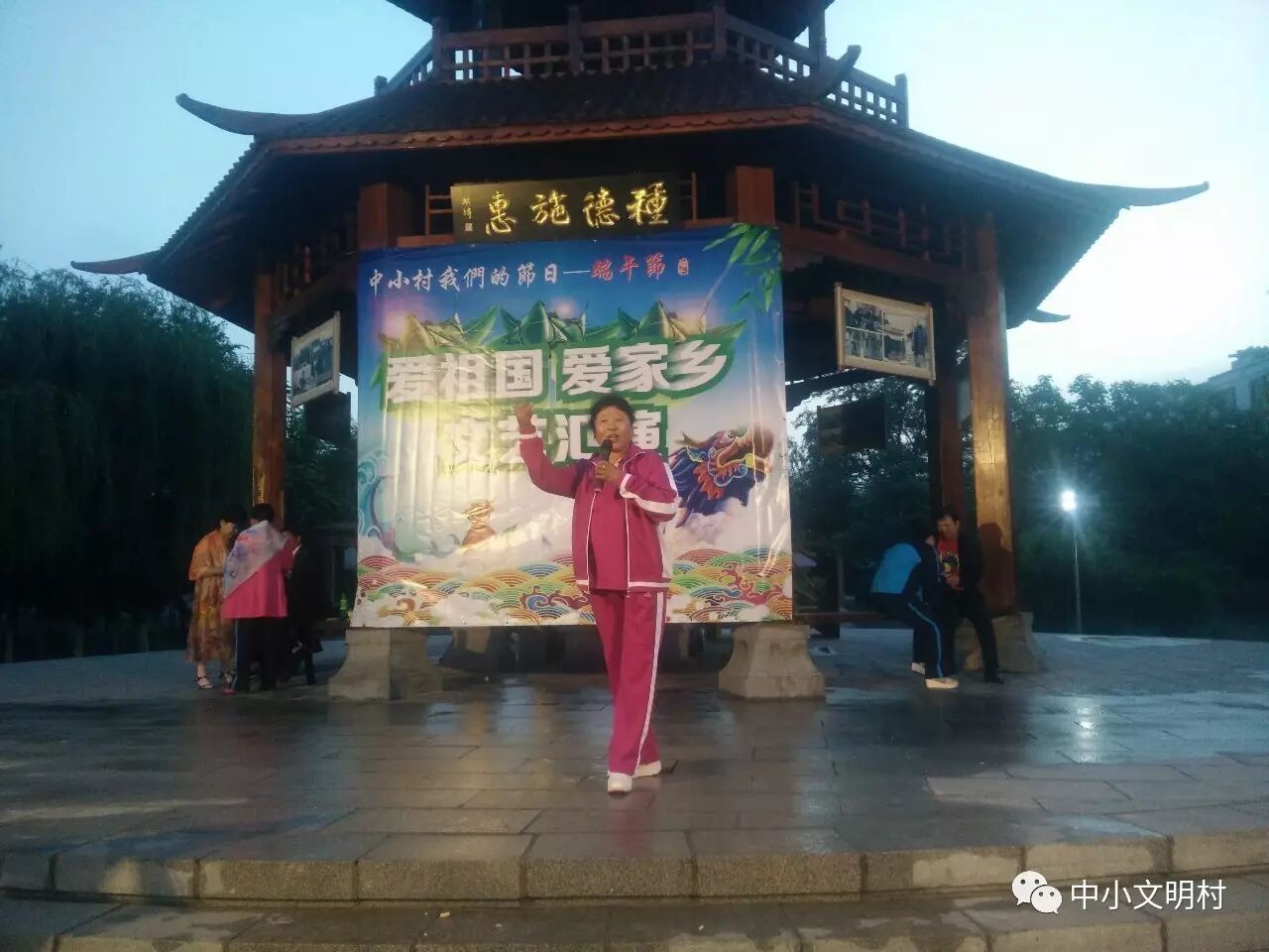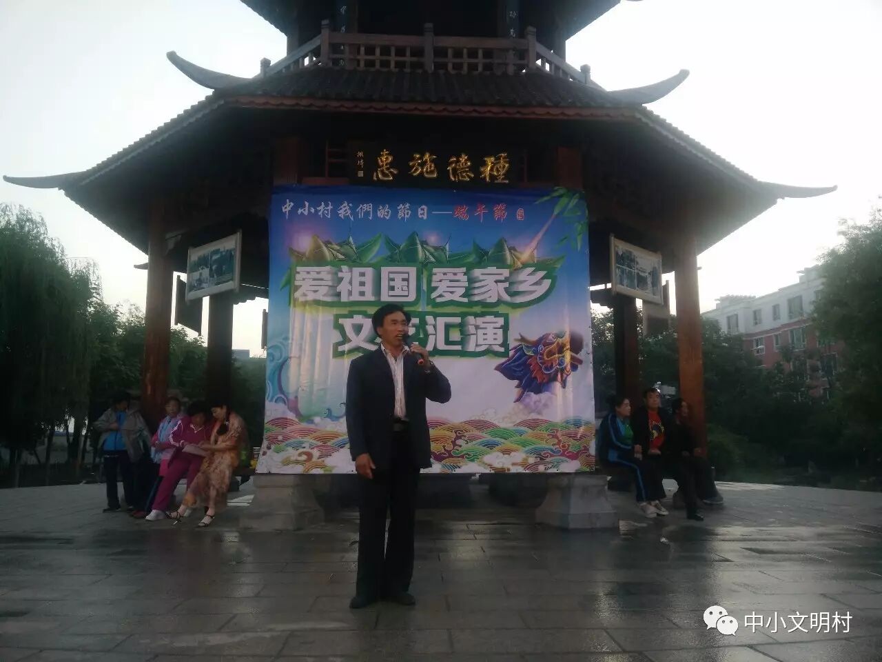 为继承和发扬民族传统文化,营造健康、文明、和谐的浓厚节日氛围,积极推进我村精神文明建设。5月29日下午,“我们的节日--端午节,爱祖国.爱家乡”主题文艺汇演活动,在中小村中兴花园小区健身广场隆重举行。活动由中共中小村委员会,中小居民委员会联合主办、中小村老年乐友协会承办,中共中小镇委员会协办。