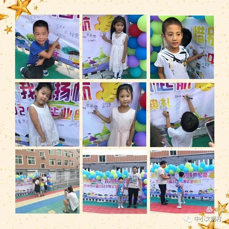 毕业典礼马上要开始了,伴着轻快的音乐,家长和孩子手拉着手,共同留念签名墙